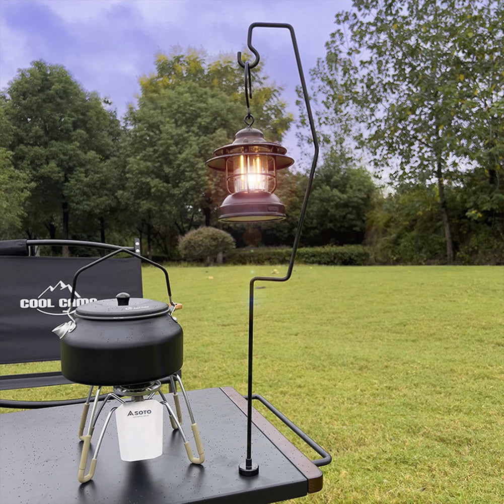 1. Iron Build: Constructed with reinforced, thickened iron and finished with a powder coating, our outdoor light stand hook offers superior durability. It's designed to resist water and prevent rust, ensuring a long-lasting addition to your camping gear.