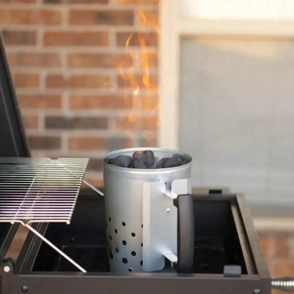 Features Heat-resistant handle Assembled product dimensions (L x W x H) 7.09 x 11.61 x 10.83 inchesProduct Details The new Professional Grill, Outdoor Charcoal Chimney Fire Starter is your must-have tool for easy outdoor cooking. Designed to ignite charcoal quickly and efficiently, it features a sturdy, heat-resistant handle that allows for safe operation even when fully loaded with charcoal. Simply fill the top with charcoal, place a few crumpled papers or fire starters at the bottom, and light. In just 10-15 minutes, you'll have a roaring flame ready for your grill. Its durable galvanized steel construction ensures long-lasting use, while the vented design promotes optimal airflow for a consistent burn. Perfect for backyard barbecues, camping trips, or any BBQ occasion, this chimney fire starter makes it easy to get the perfect smoky flavor every time. Charcoal Starter Durable construction Ventilated design Large capacity Easy to use Portable and lightweight