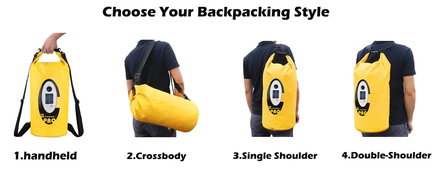 SELORSS Solar/Battery Powered Waterproof Outdoor Sport Bag with Bluetooth Speaker ,Big Capacity